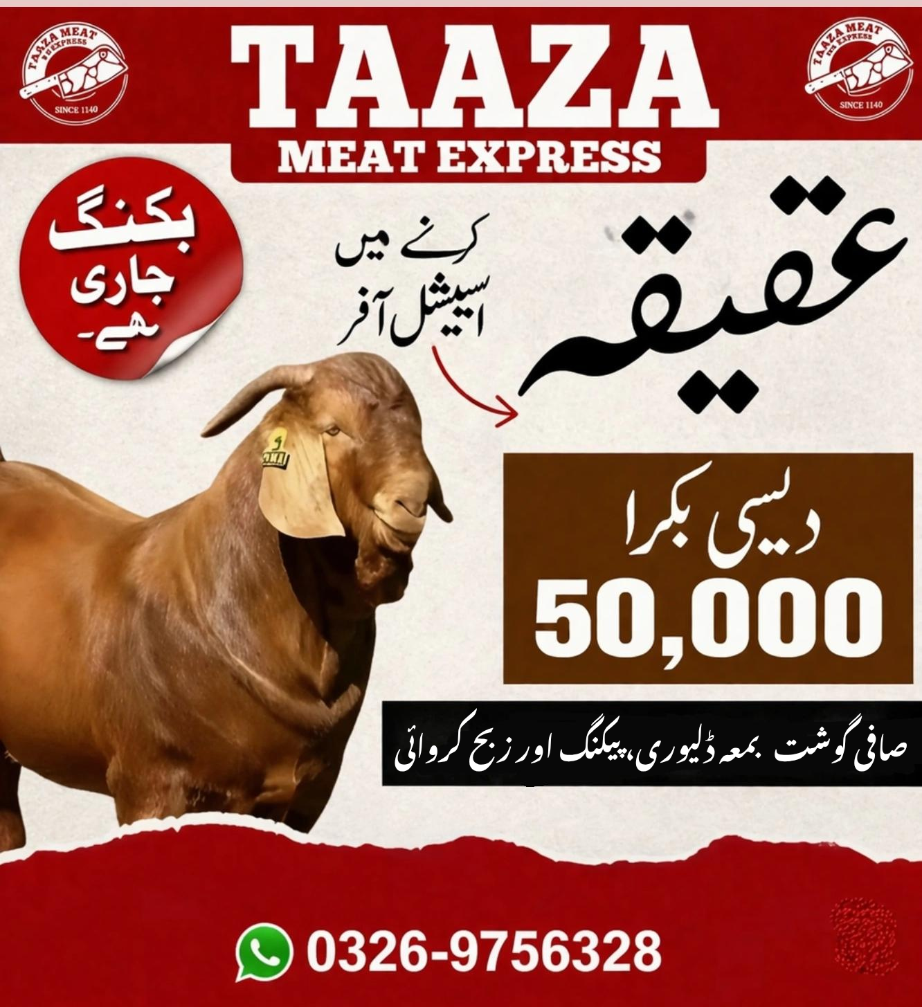 At Taaza Meat Express, we understand the religious significance of Aqiqah and ensure that every step is handled with care, responsibility, and professionalism. From providing premium-quality goats to delivering fresh, hygienic meat to your doorstep, we offer a complete Aqiqah solution tailored to your needs.
